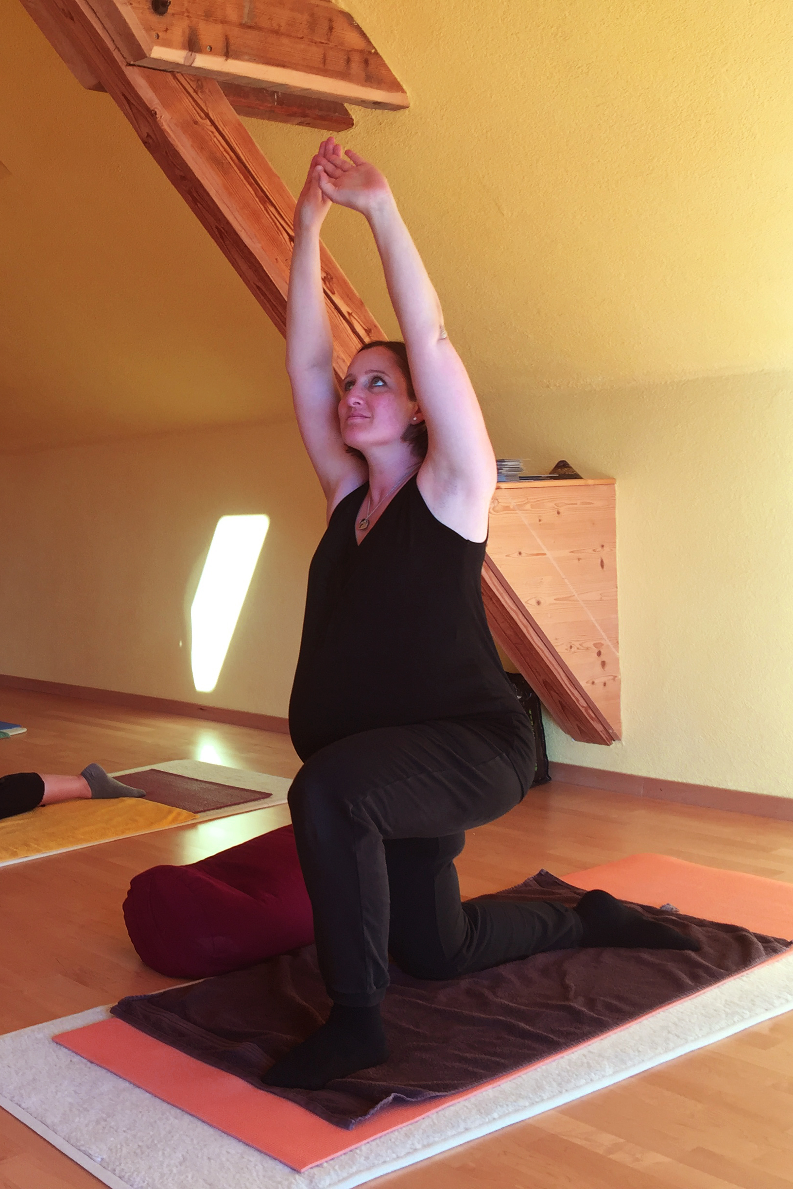 Während der Schwangerschaft (4-9 Monat) können leichte Yogaübungen den Rücken stärken und die Atmung harmonisch beeinflussen.